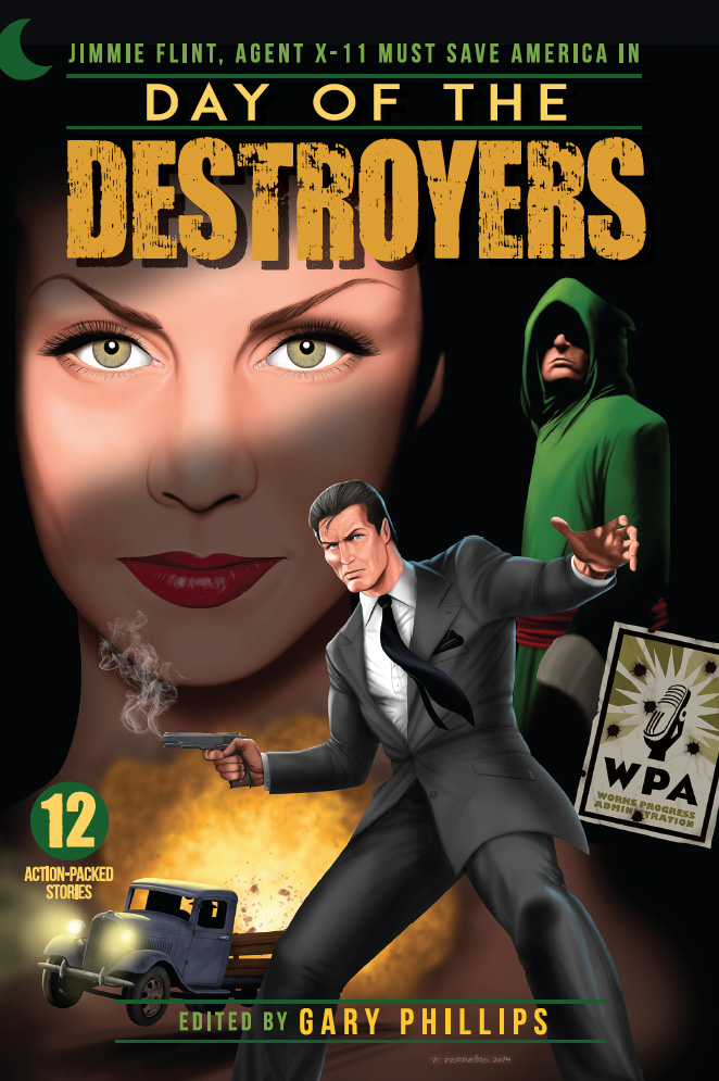 Inspired by a purported event from the 1930s wherein extremist interests sought to overthrow the Roosevelt administration in a bloody coup, Day of the Destroyers pits the ever-resourceful Jimmie Flint, Secret Agent X-11 against these forces. Each chapter in the anthology is linked to the larger storyarc. Writers who contributed to this effort include Jeri Westerson, Paul Bishop and Gp, who also conceived and edited the book. In hardback and tradepaper from Moonstone Books.
